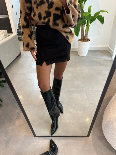 Kadın çift yırtmaç detaylı mını etek