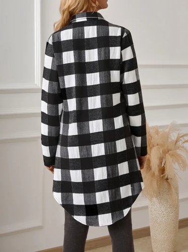 • Kadın uzun kollu ekoseli önden düğmeli dokuma uzun gömlek