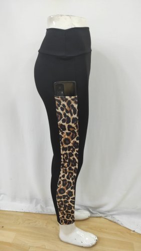 • Kadın yüksek bel leopar desen ve cep detaylı dalgıç tayt
