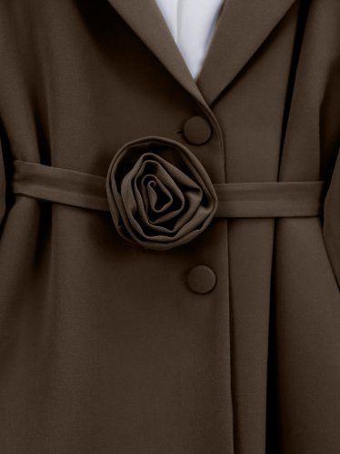 • Kemeri Gül Detaylı Kruvaze Yaka Ceket Pantolon Takım Kahve
