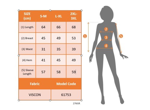 • Modelin Ölçüleri: Boy:165, Kilo:55, Göğüs:90, Bel:72, Kalça: 100