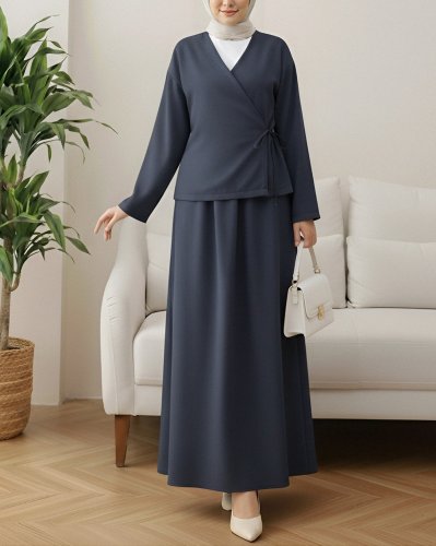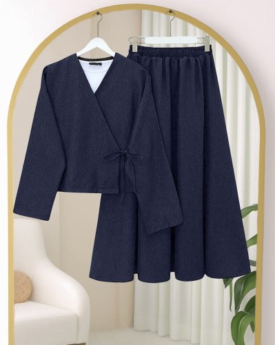 Önü Bağcıklı Etekli Yün Efekt Kışlık Laci
